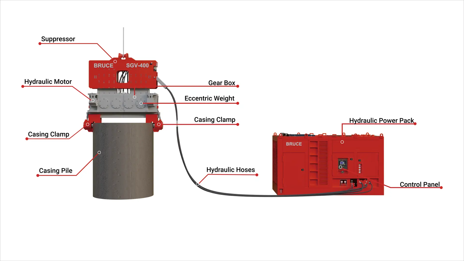 It works by generating vertical vibrations through the eccentric weight of a gearbox to reduce friction between the soil and the pile.